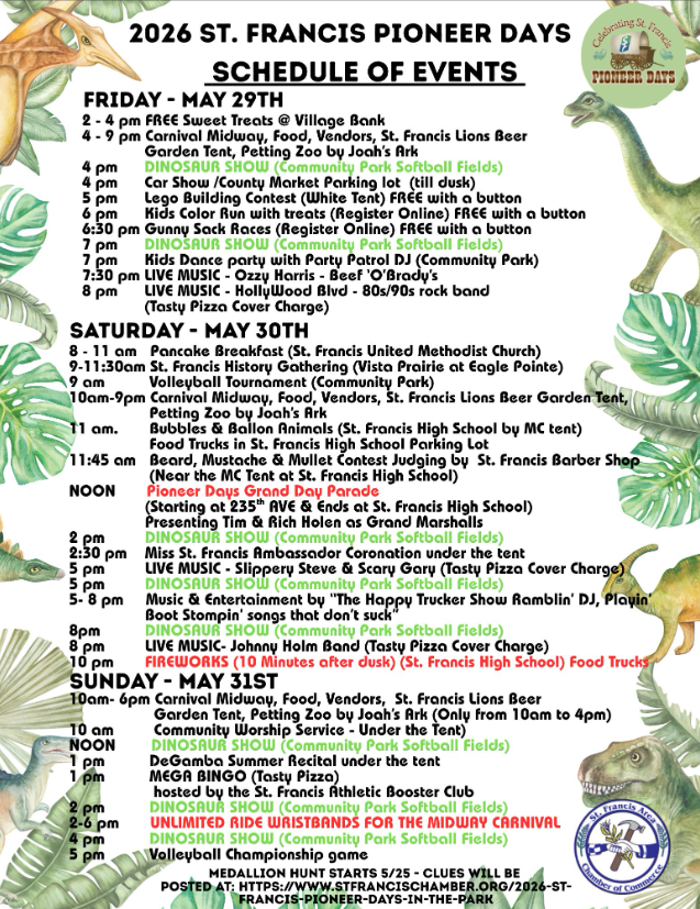 IMPORTANT: For safety reasons, the St. Francis Police Chief has ordered absolutely no throwing of candy from moving vehicles or floats. All candy/items must be handed out from walkers.