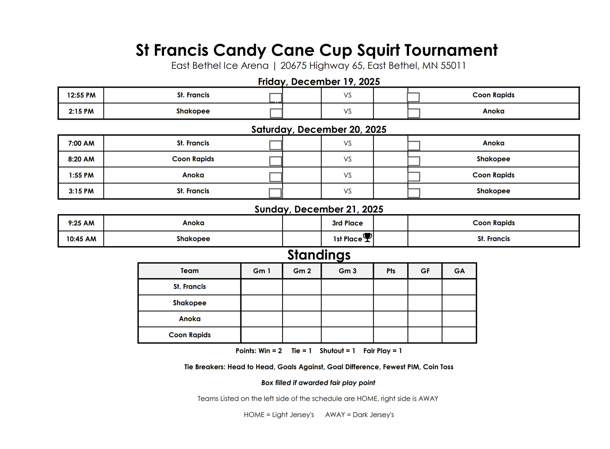 St Francis Youth Hockey Association is excited to offer a holiday themed Squirt C & Peewee B1 Tournament.