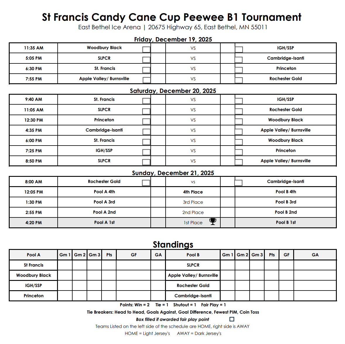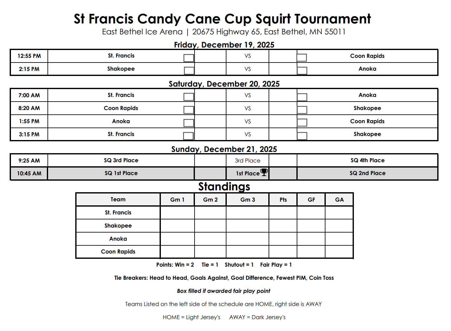 St Francis Youth Hockey Association is excited to offer a holiday themed Squirt C & Peewee B1 Tournament.