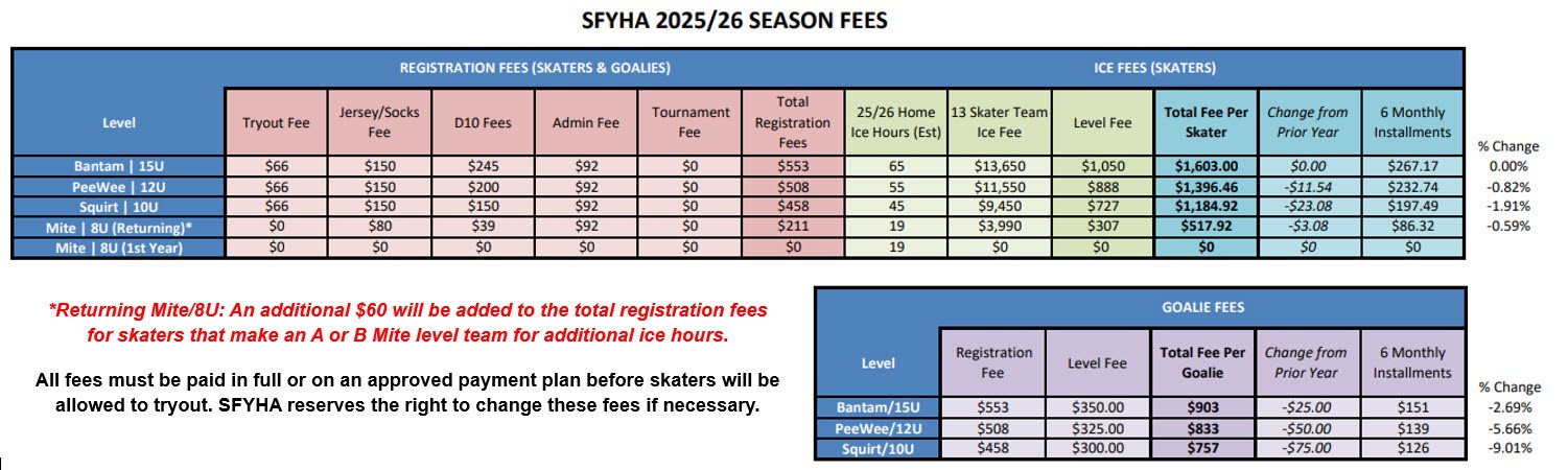 SFYHA families that are registering more than one player will receive a 5% discount per player using the discount code: MFD2025 on the "Pricing" section during registration.